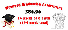 Item #wrapgraduationASMT48Wrapped Graduation Assortment, 48 packs of 6 cards.$169.920 Min:1Product has been added to your shopping cart