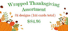 Item #wrapthanksgivingASMT24Wrapped Thanksgiving Assortment, 24 packs of 6 cards.$84.960 Min:1Product has been added to your shopping cart