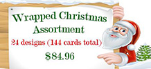 Item #wrapxmasASMT24Wrapped Christmas Assortment, 24 packs of 6 cards.$84.960 Min:1Product has been added to your shopping cart